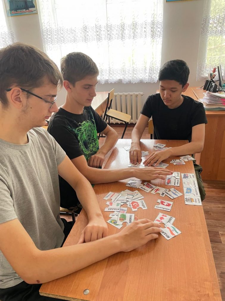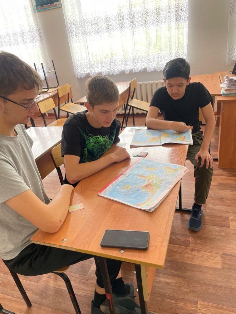 География пәні бойынша Жазғы мектептің жұмысы аясында балалар "Мені тап" ойыны арқылы картамен және атласпен жұмыс істеді, сондай-ақ ойын арқылы басқатырғыштар "елдердің халықаралық мамандануы" тақырыбын қайталады .