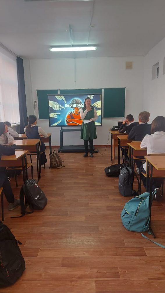 17.11.2025 Первомайка ауылының ЖОББМ мектебінде 7–8 "А" "Б"сынып оқушылары арасында "Буллингтен қалай қорғануға болады" атындағы сынып сағат өтті. Сынып сағатының мақсаты: Буллингтің негізгі ұғымдары