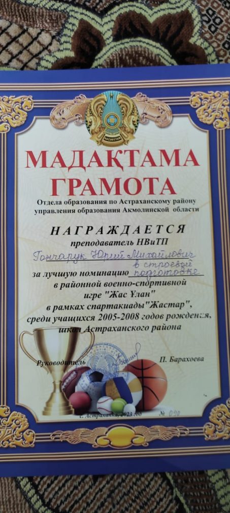 2023 жылдың 24 мамырында оқушылар Астрахан ауданының Новочеркасск мектебінде өткен аудандық «Жас-Ұлан» жарыстарына белсене қатысып, үздік бұрғылау дайындығы үшін АББ сертификатымен марапатталды.
